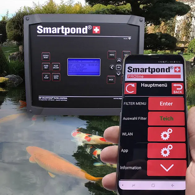 Il controllo Smartpond® PROline PLUS è responsabile di quel piccolo “PIÙ”. La possibilità di collegare il controllo PROline con l’app Smartpond® è un grande vantaggio rispetto ad altri filtri. Per garantire che funzioni senza problemi, ci sono descrizioni dettagliate che vengono inviate automaticamente con l’acquisto del controllo. Abbiamo anche messo a disposizione i video dimostrativi corrispondenti per il download sul nostro sito web. E poi siamo anche lì per voi personalmente per fornire assistenza – ove necessario – e quindi utilizzare l’ampia gamma di possibilità.